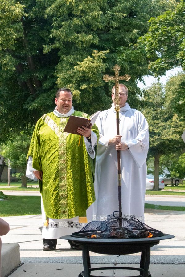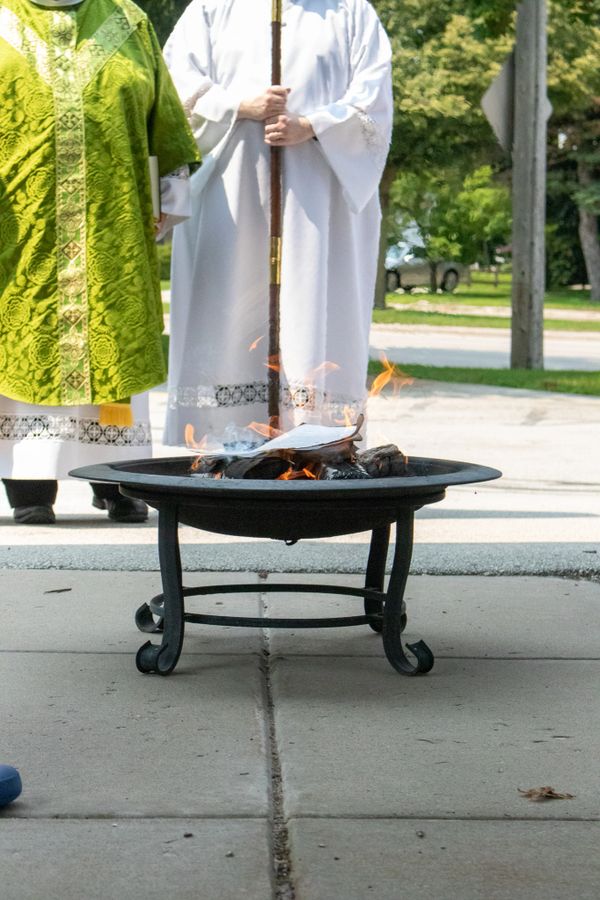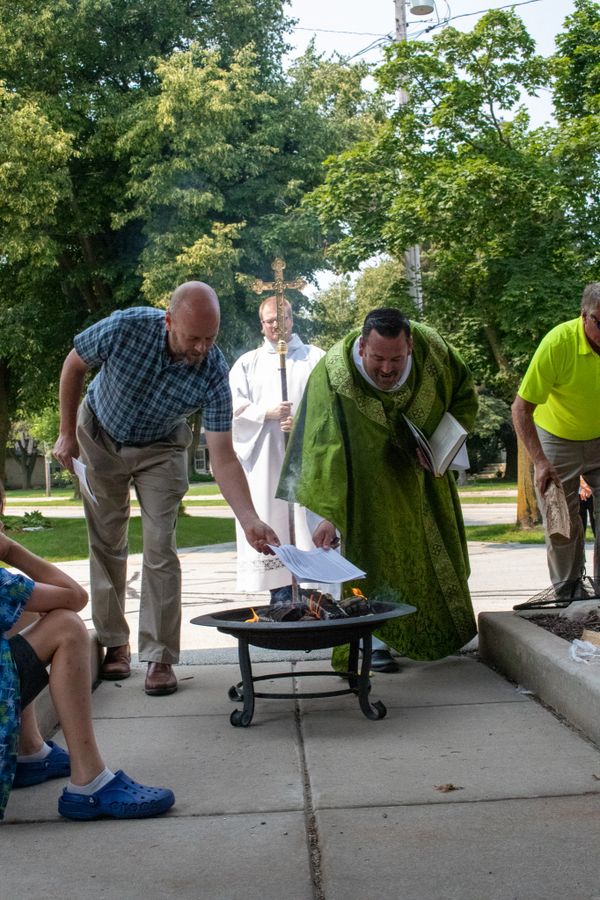 On Sunday, July 18, 2021, we celebrated the paying off of our mortgage, gave thanks for God's blessings over the last 76 years, and said farewell to Vicar and Becca Souer. We worshipped together, gathered in the parking lot for a mortgage burning, and enjoyed food, games, and